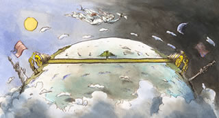 Alexander began to explore the possibility of digging a transatlantic tunnel, using the island as the centre of operations from which the tunnel would run in both directions. Following his terrible experiences of sea travel, his first impetus for the tunnel was to enable a more convenient form of transport. However, he soon came to see that travel through the Earth could be just as lengthy and uncomfortable as travel across the sea. Digging a tunnel large enough to move many people and all the associated luggage and provisions would simply not be viable.